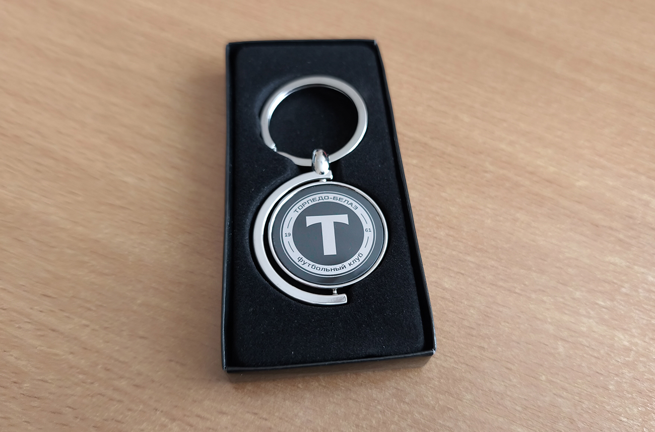 Брелок металлический с гравировкой эмблемы.