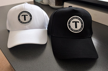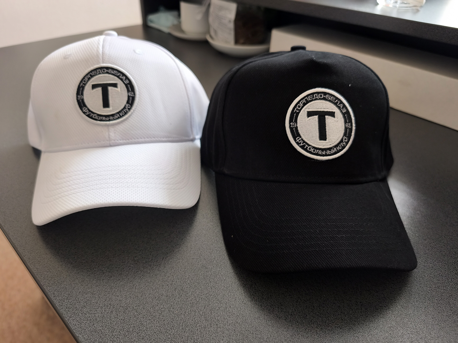 Бейсболки с логотипом, черный и белый варианты.