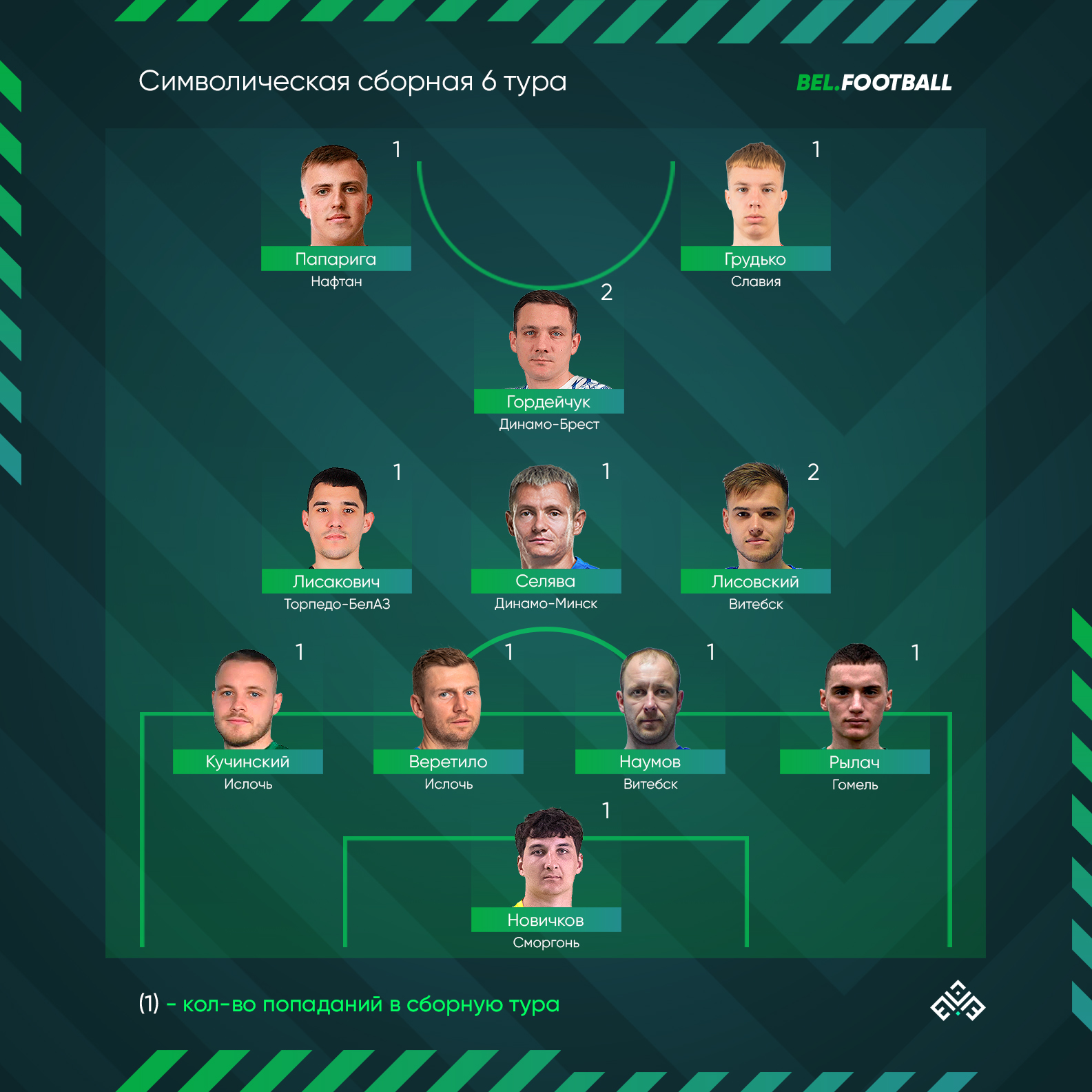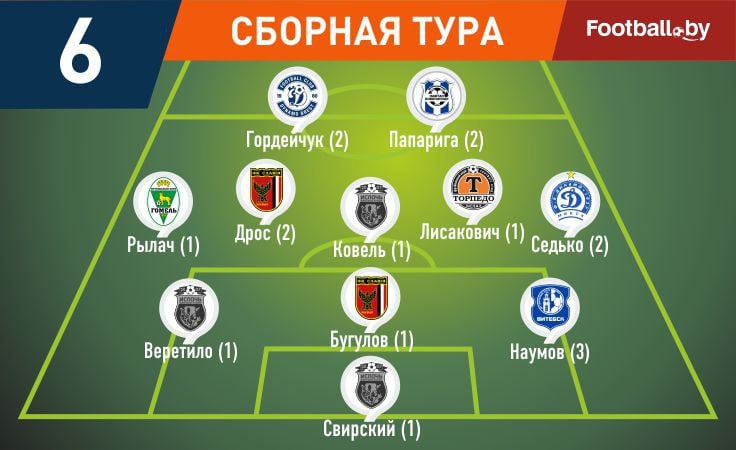 Ассоциация «Белорусская федерация футбола» включила полузащитника ФК «ТОРПЕДО-БЕЛАЗ» Дмитрия Лисаковича в символическую сборную шестого тура.