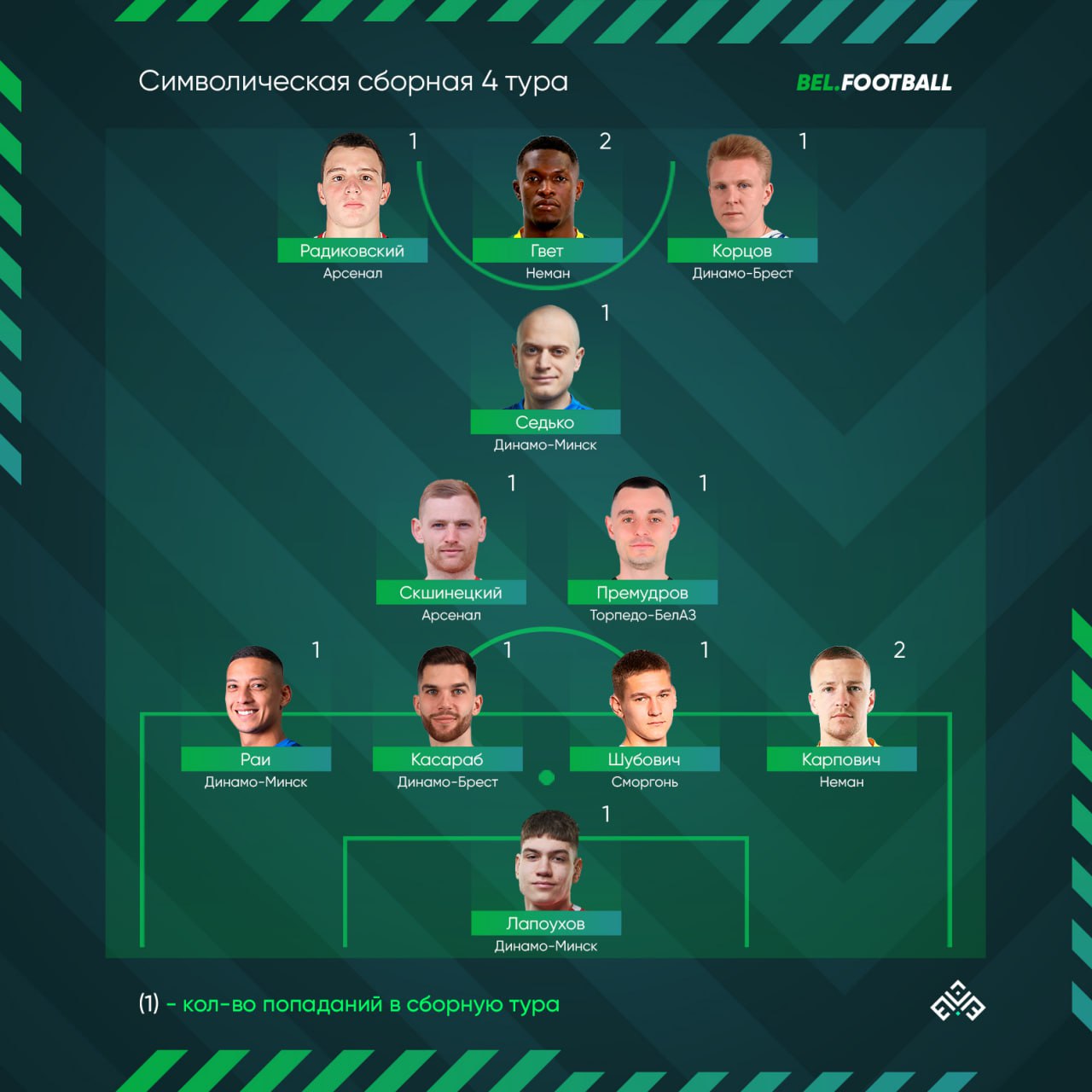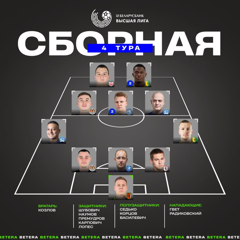 Все составители символических сборных четвертого тура чемпионата – АБФФ, компания Betera, сетевые издания football.by и bel.football – включили в состав капитана «автозаводцев» Кирилла Премудрова.