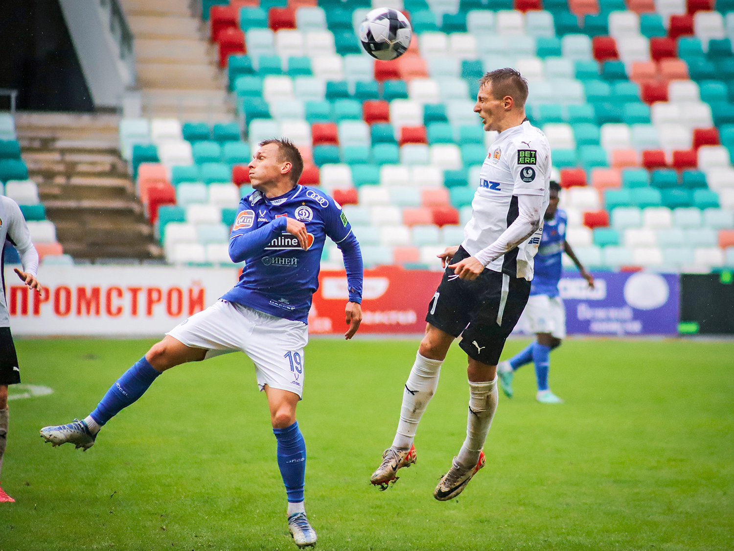 Еще в первой четверти игры «автозаводцы» могли не просто повести в счете, но и сделать куда более серьезную заявку на победу. Удары головой Дениса Левицкого и Данилы Нечаева, «выстрел» от дуги штрафной Александра Ксенофонтова – уже в этих моментах торпедовцы были близки к успеху. Но. конечно, самая реальная возможность была у Максима Скавыша, у которого динамовский голкипер Фёдор Лапоухов каким-то непостижимым образом выцарапал мяч прямо в ногах. Чуть позже были еще хлесткий дальний, но немного неточный удар Максима Мякиша и досадное непопадание по мячу в перспективной позиции Дениса Левицкого. В противовес этому за весь первый тайм – лишь тройка ударов по воротам со стороны «Динамо», все из-за пределов штрафной и значительно выше перекладины. Пройти эшелонированную оборону «черно-белых», начинающуюся еще в центре поля, сопернику удавалось считанные разы.