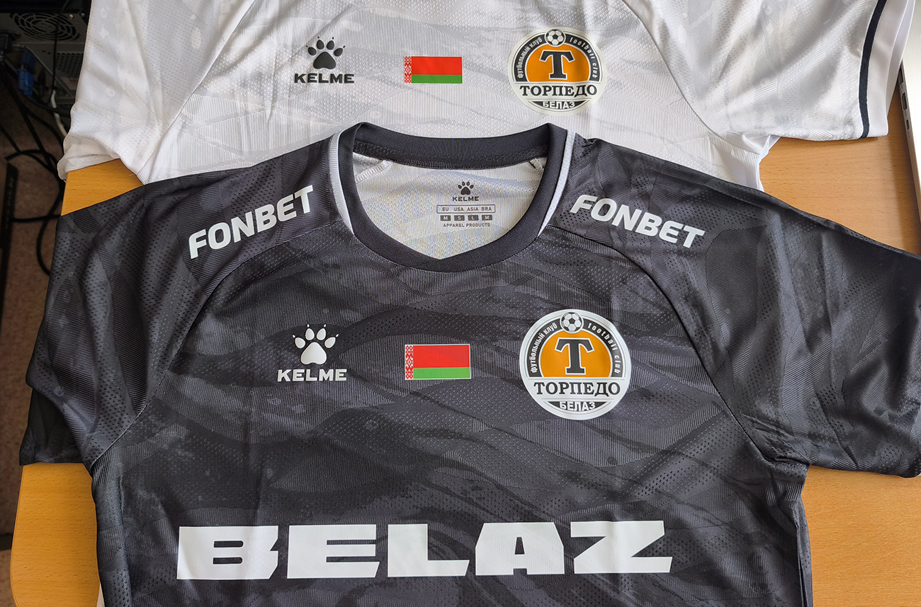 Футболки черные и белые. Спинка чистая, прилагается купон на 25% скидку на нанесение фамилии и номера.