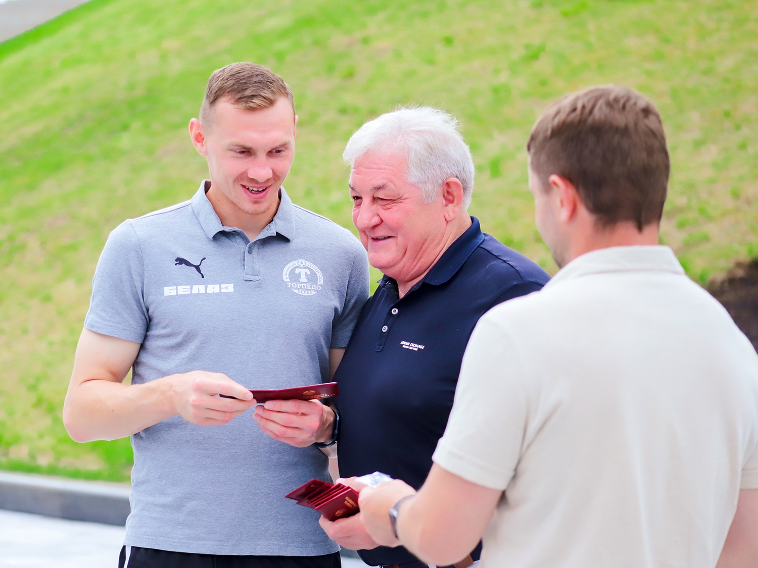 Сегодня в знаковом для белорусов месте – на Кургане Славы – состоялось официальное вручение удостоверений и значков «Мастер спорта Республики Беларусь» игрокам ФК «ТОРПЕДО-БЕЛАЗ», завоевавшим в прошлом году Кубок Республики Беларусь.