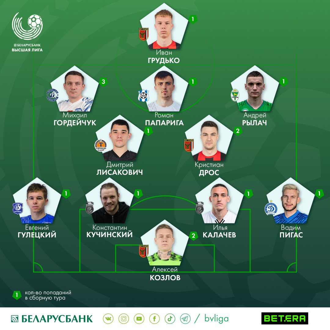 Также Лисаковича включили в свои версии сборной тура компания Betera, сайты Bel.football и Football.by.