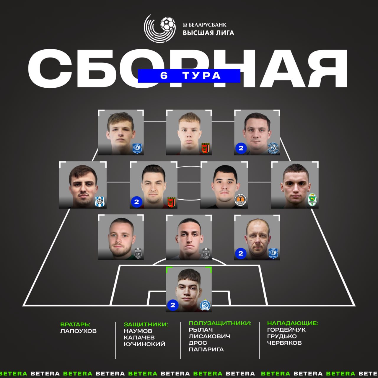 Ассоциация «Белорусская федерация футбола» включила полузащитника ФК «ТОРПЕДО-БЕЛАЗ» Дмитрия Лисаковича в символическую сборную шестого тура.