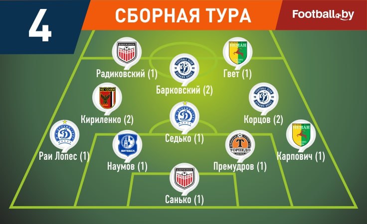Все составители символических сборных четвертого тура чемпионата – АБФФ, компания Betera, сетевые издания football.by и bel.football – включили в состав капитана «автозаводцев» Кирилла Премудрова.