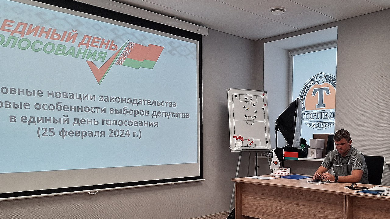 В период предсезонной подготовки между интенсивными тренировками находится время, чтобы внутри коллектива обсудить те или иные важные вопросы. Так, вчера с футболистами и тренерско-административным штабом была проведена беседа о проходящей в стране электоральной кампании, ее особенностях и новшествах в избирательном законодательстве.